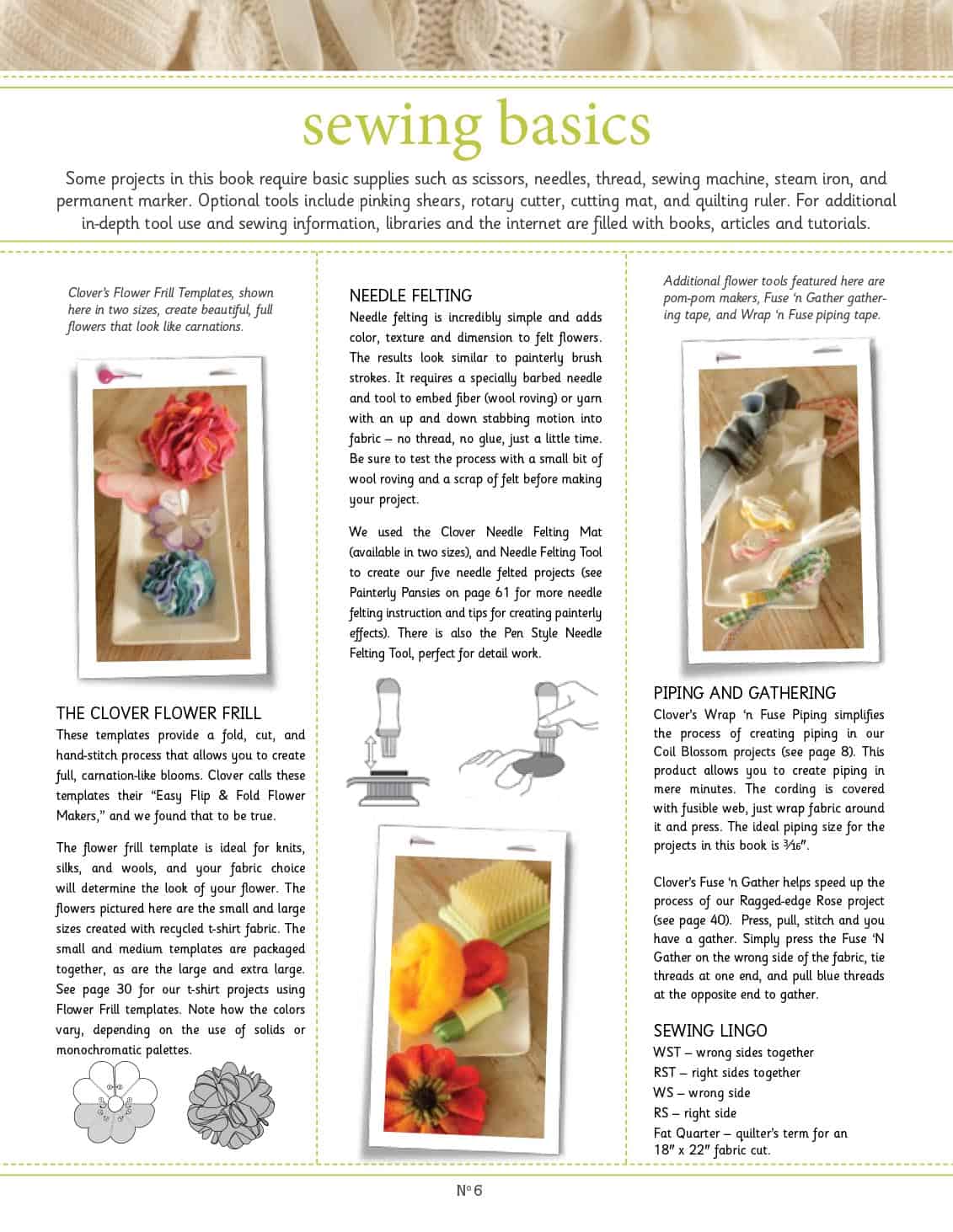 Bring a handmade touch to your wardrobe and home with Fabric Flowers. This inspiring 85 page book features 25 quick and easy projects—from wearable blooms to decorative accents and gifts. Full size pattern templates are located in the back.