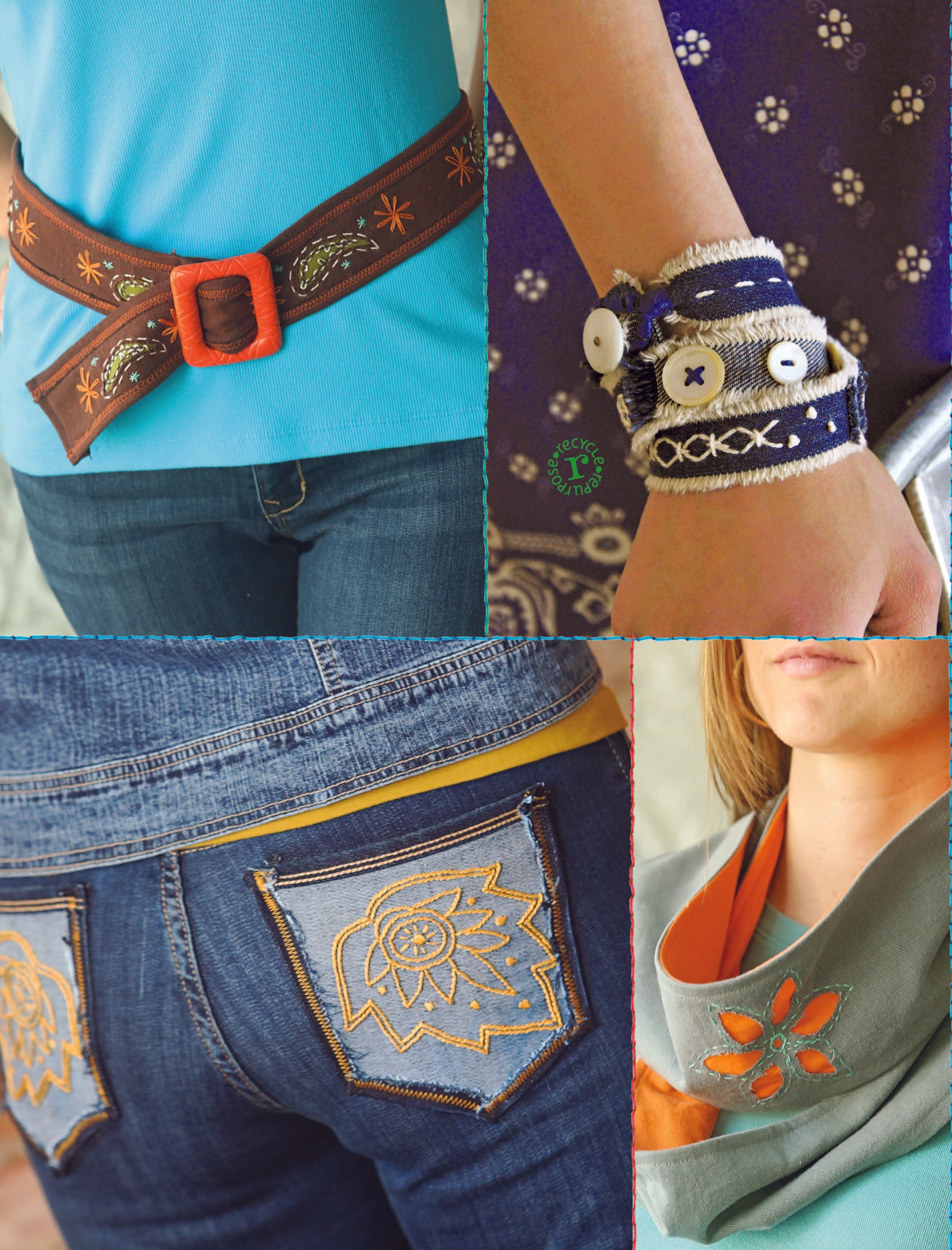 Helpful transfer techniques and stitch diagrams are included to guide stitchers of all skill levels. You will find 7 Trace & Transfer Techniques and 16 Stitch Styles to get you started. Projects focus on both denim yardage and re-purposed denim, making it easy to bring new life to jeans, jackets, purses, and totes with just a needle and thread. Step-by-step instructions are included for projects such as a scarf, belt, eyeglasses case, headband, bracelets, and cell phone and business card cases.
